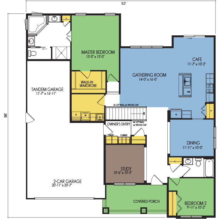 A part of our dream series, the tamarack floor plan features 3 bedrooms and 1.5 bathrooms with a foot print of 44x30 feet and 1342 total square feet of living space.