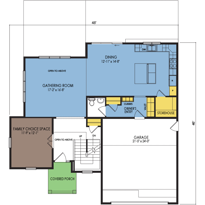 A part of our dream series, the tamarack floor plan features 3 bedrooms and 1.5 bathrooms with a foot print of 44x30 feet and 1342 total square feet of living space.