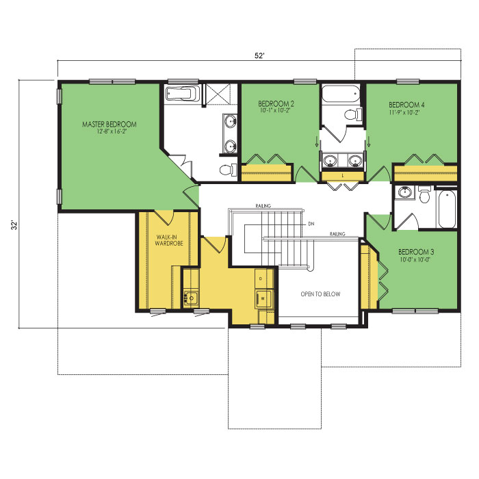 A part of our Designer Series, the Fishers Island floor plan features 4 bedrooms and 3.5 bathrooms with a foot print of 52x49 feet and 2600 total square feet of living space. Floor Plan #DN227