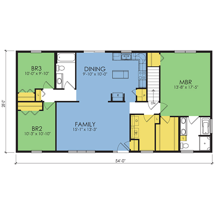 A part of our Wausau Originals, the Hallmark floor plan features 3 bedrooms and 2 bathrooms with a foot print of 54x28 feet and 1512 total square feet of living space. Floor Plan #WO126