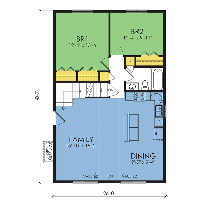 A part of our wausau originals, the hemlock plan floor plan features 2 bedrooms and 1 bathroom with a foot print of 26x40 feet and 1524 total square feet of living space. Floor Plan #WO640