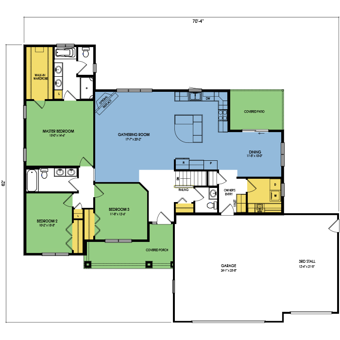 A part of our Family Series, the Hood River floor plan features 3 bedrooms and 2.5 bathrooms with a footprint of 70x62 feet and 1898 total square feet of living space. Floor Plan #FM110