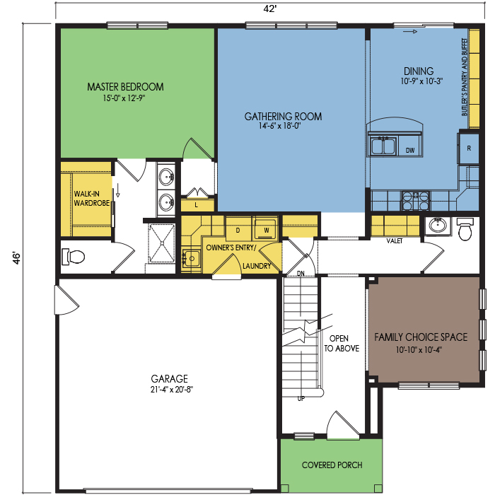 A part of our Resort Series, the Longs Peak floor plan features 3 bedrooms and 2.5 bathrooms with a foot print of 42x46 feet and 1762 total square feet of living space. Floor Plan #RN320